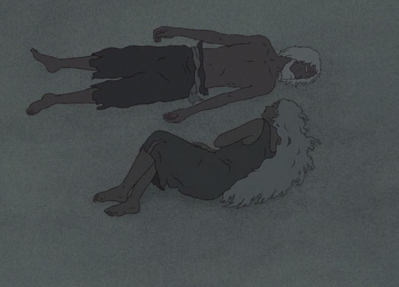 لاکپشت همچون دانهای فرو رفته، ترک میخورد و جوانهای از جنس دختری جوان میزند. مرد از این جوانه مراقبت میکند؛ باران (زندهکننده) آن را بیرون میآورد.